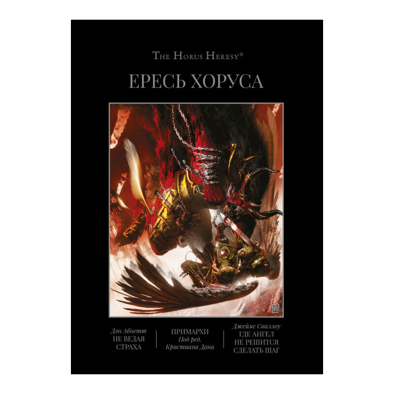 Не ведая страха Не ведающий о возникновении и распространении Ереси, но несколько озадаченный приказами Хоруса, примарх легиона Ультрамаринов Робаут Гиллиман возвращается в Ультрамар с намерением мобилизовать своих воинов, чтобы отразить массированное вторжение орков в систему Веридиан. В это время предполагаемый союзник Ультрамаринов в этой битве, легион Несущих Слово, организует вторжение на Калт, второй по значимости мир системы Ультрамар, разметав флот защитников и истребляя всех, кто встанет на их пути. Это худший сценарий из тех, что Гиллиман мог себе представить. Значит, его брат Лоргар решил поставить точку в их ожесточенном соперничестве таким вот безумным способом. Но лишь когда предатели вызывают своих демонических хозяев и на Ультрамаринов обрушиваются орды Хаоса, Робаут понимает, как далеко зашло безумие его брата. А еще он понимает, что в этой борьбе ни одна из сторон не сможет победить… Примархи Созданные по образу и подобию Императора, примархи привыкли считать себя принцами Вселенной и хозяевами своей судьбы — они вели легионы космических десантников в славном завоевании Галактики, и никакой враг Империума не мог противостоять им. Тем не менее даже среди этого легендарного братства были посеяны семена инакомыслия, причем задолго до того, как свершилось величайшее предательство и Хорус разжег пламя Ереси. В этой антологии собраны четыре новеллы, посвященные могущественным примархам: Фулгриму, Льву Эль’Джонсону, Феррусу Манусу и близнецам Альфарию и Омегону. И хотя роли давно розданы, исполнителям еще только предстоит развязать войну, которая навсегда изменит лицо Империума. Где ангел не решится сделать шаг С первых дней Великого крестового похода Сангвиний — ангельский примарх Девятого легиона — был среди самых близких и самых верных братьев Хоруса. Однако все это время его Кровавые Ангелы вынуждены были скрывать болезненную тайну, касающуюся их истинной природы. Хорусу становится известно об изъяне легиона, и Магистр Войны намекает брату, что ключ к спасению Ангелов можно отыскать в руинах одного из завоеванных миров. Сыновья Сангвиния бросаются туда, не раздумывая. И когда предательство Хоруса станет очевидно, Кровавые Ангелы будут вынуждены противостоять не только армии Хаоса, но и своим собственным демонам, вырвавшимся на равнины Сигнус Прайм…