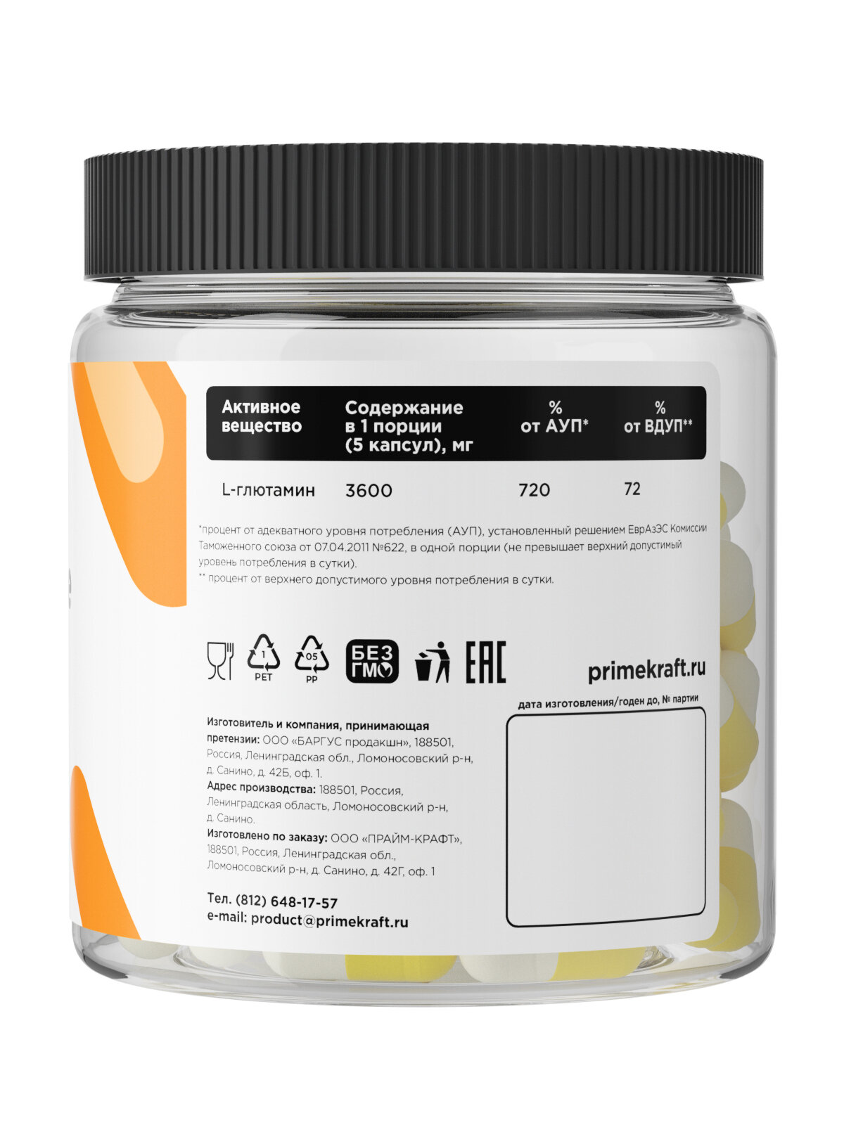 L-Glutamine капсулы Primekraft/Праймкрафт 720мг 240шт ООО "БАРГУС продакшн" (1511948)