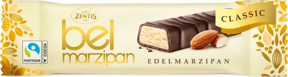 Батончик марципановый Zentis belmarzipan classic - европейское лакомство, родом из Германии для детей и взрослых. Батончик изготовлен на основе отборного, перетертого в муку калифорнийского миндаля. Вкуснейший батончик, покрытый натуральным молочным шоколадом, подарит вам истинное наслаждение и станет идеальным дополнением к чашке чая или кофе.