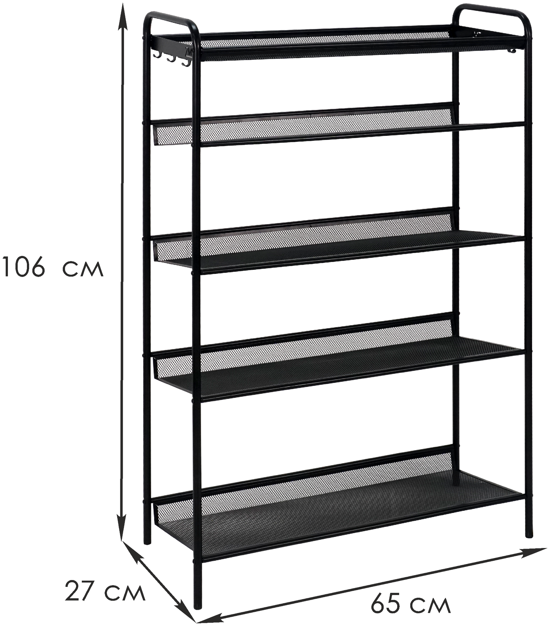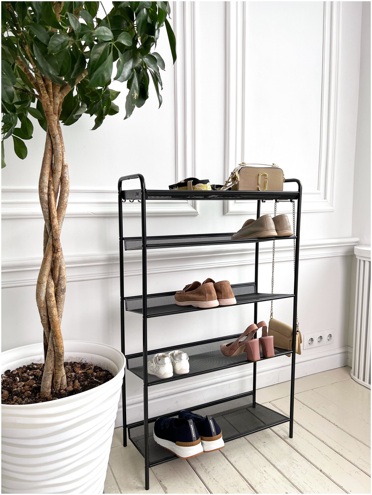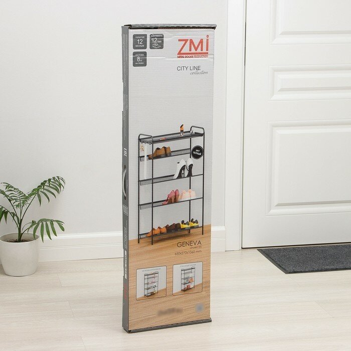 - Четыре полки вместят до 12 пар обуви, а продуманные расстояния между ними позволят разместить как летнюю, так и зимнюю обувь.
