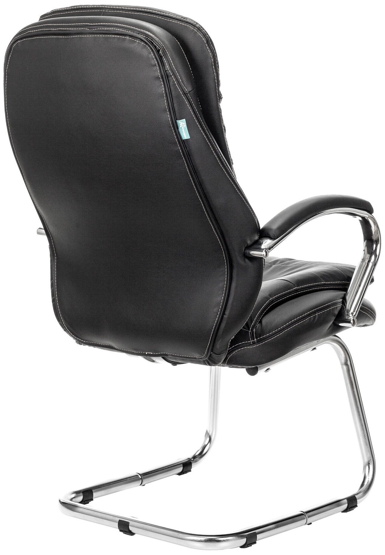 Бюрократ – эргономичное кресло на полозьях, предназначенное для оборудования переговорных зон, конференц-залов, кабинетов руководителя офисными креслами для посетителей и сотрудников. Металлические полозья цвета хром, обивка экокожа черного цвета или натуральная кожа черная. Подлокотники хромированные с мягкими накладками из искусственной кожи. Соответствует стандарту Bifma.