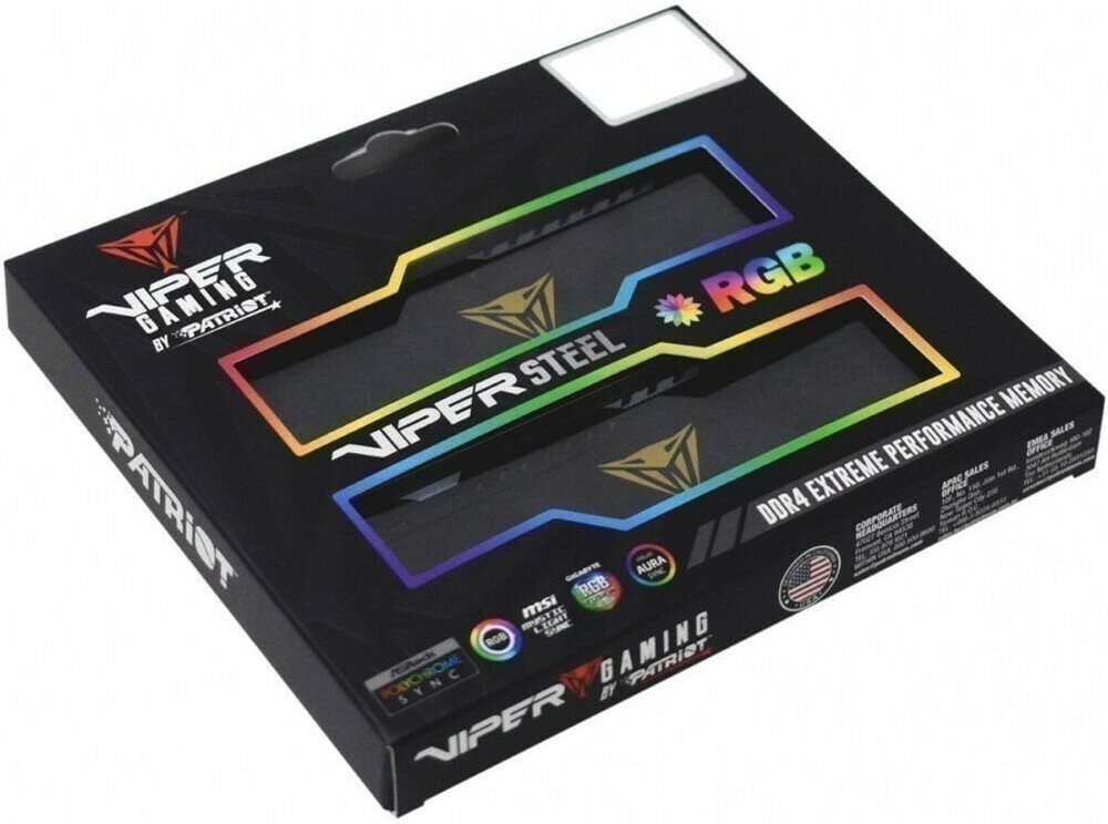 Компания Patriot представляет модули оперативной памяти Viper Steel RGB стандарта DDR4 для игровых настольных компьютеров. Изделия оптимизированы под аппаратные платформы AMD и Intel.