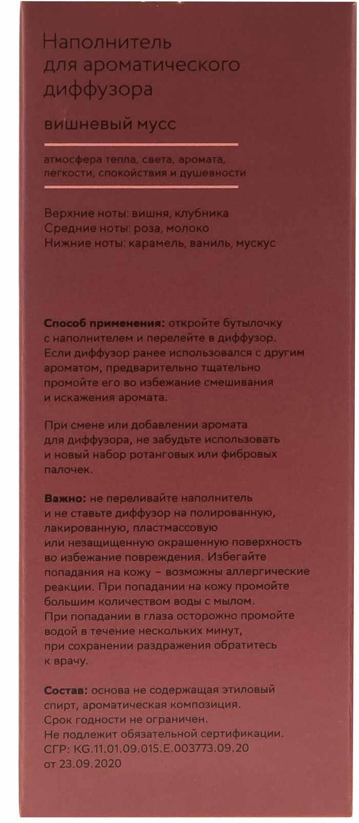 Наполнитель для диффузора HYGGE вишневый мусс 100 мл Без бренда