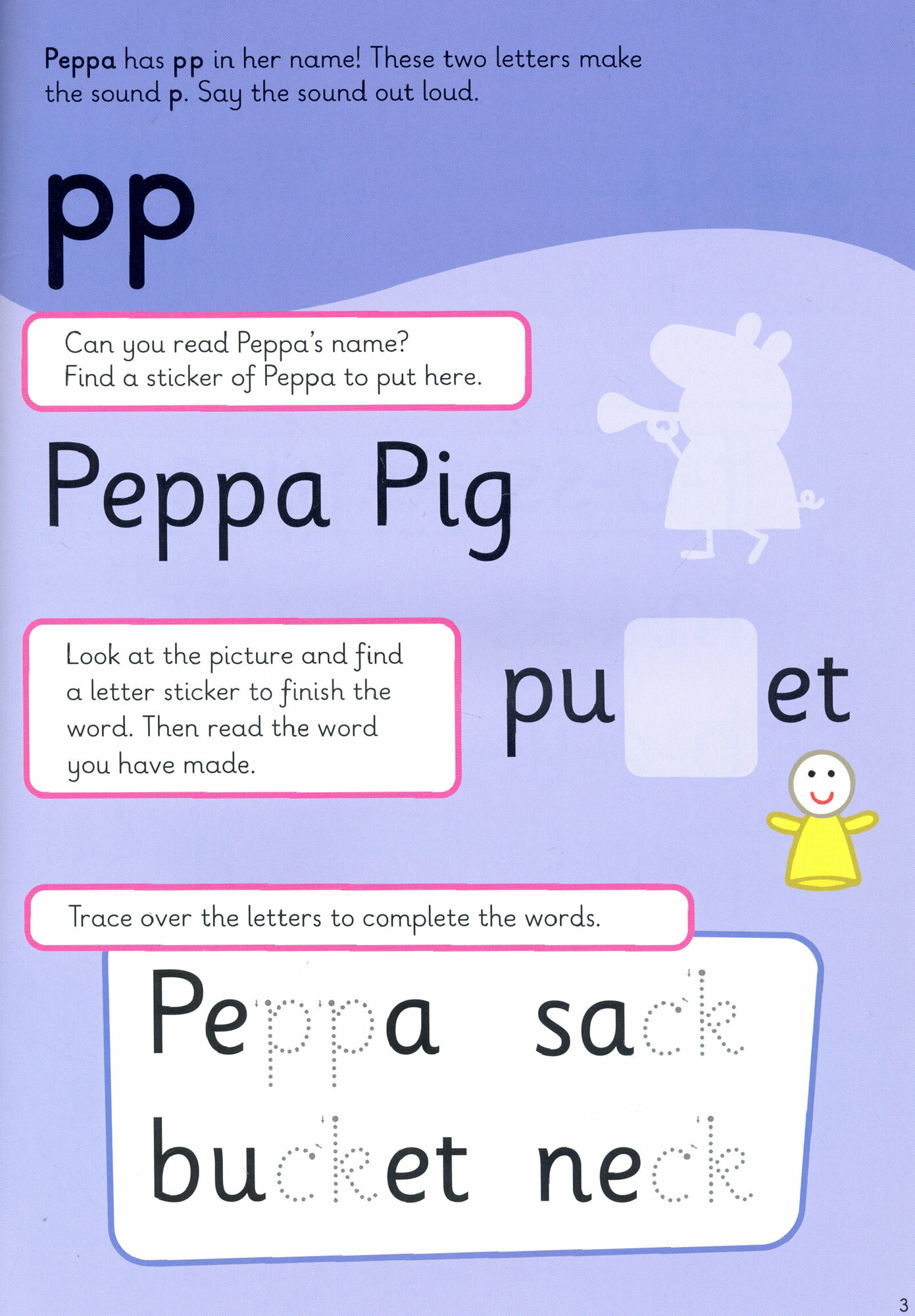 Learn at home by practising first phonics with Peppa and her friends in this colourful sticker activity book. Letters and sounds are introduced in a systematic order, with fun activities to build confidence in reading and spelling.
