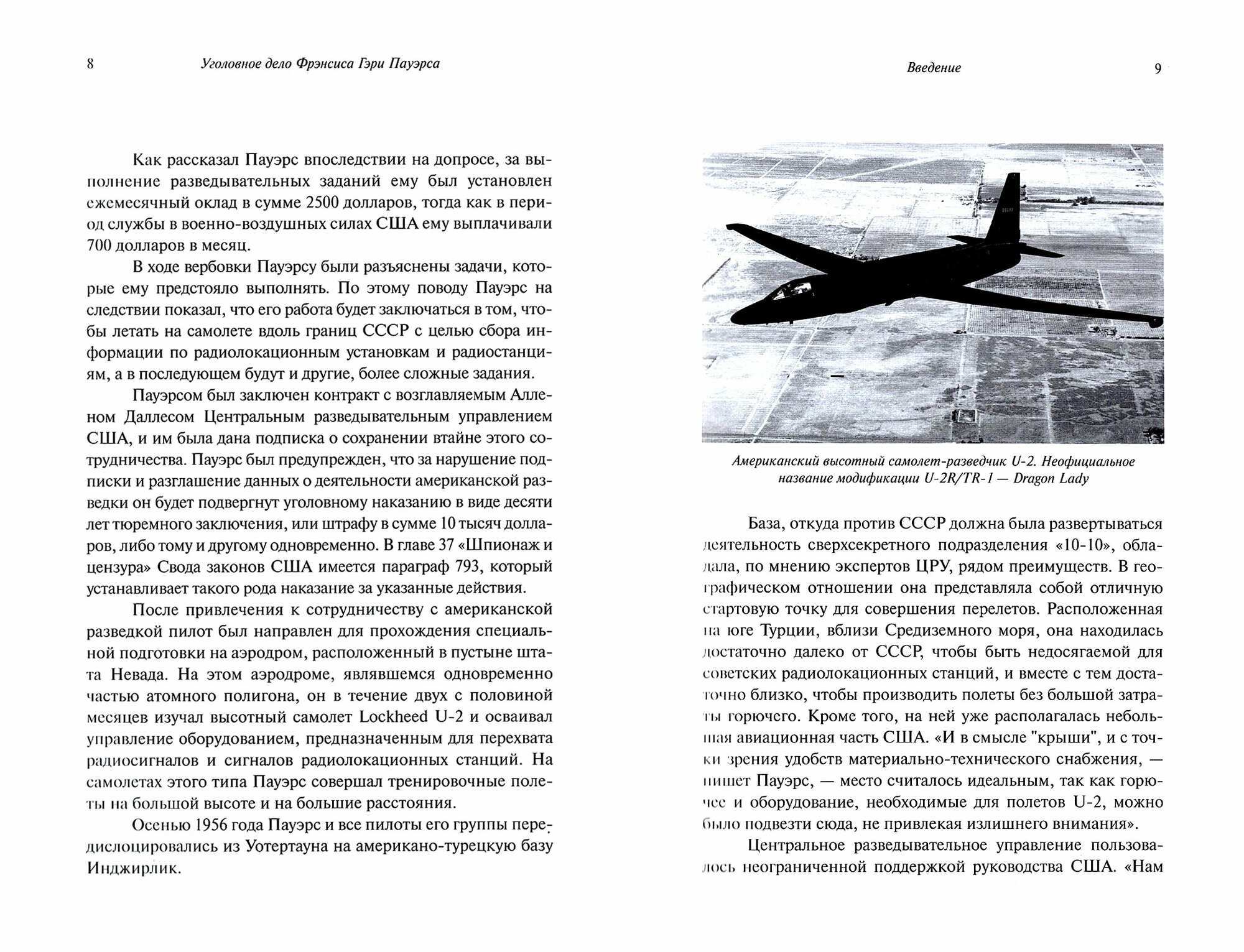 Настоящее издание содержит материалы судебного процесса в отношении летчика Фрэнсиса Гэри Пауэрса. Пилотируемый Пауэрсом самолет U-2 в разведывательных целях 1 мая 1960 года пересек государственную границу СССР. Под Свердловском самолет был сбит ракетами класса "земля-воздух". Пилот сумел выпрыгнуть с парашютом, был задержан местными жителями и передан органам КГБ. 19 августа 1960 года Ф. Г. Пауэрс был приговорен Военной коллегией Верховного суда СССР к 10 годам лишения свободы. 10 февраля 1962 года в Берлине Ф. Г. Пауэрса обменяли на советского разведчика Рудольфа Абеля. Произошедшие события наглядно характеризуют особенности "холодной войны", существовавшей между США и СССР в рассматриваемый период.