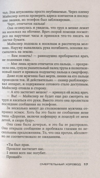 Зачёт! Всей серии и конкретно этой части! Столько экшена, столько злодеев в Смертельном хороводе,что расслабиться было некогда! Очень интересная серия, полюбившиеся главные герои: Сабина и Снейдер,плюс автор Андреас Грубер, который втерся ко мне в доверие, и теперь его книги из этой серии станут для меня автопокупаемыми! Рекомендую! Начав с первой книги Смерть с уведомлением, я не смогла остановиться, и прочитала залпом все четыре книги) и хочется ещё!