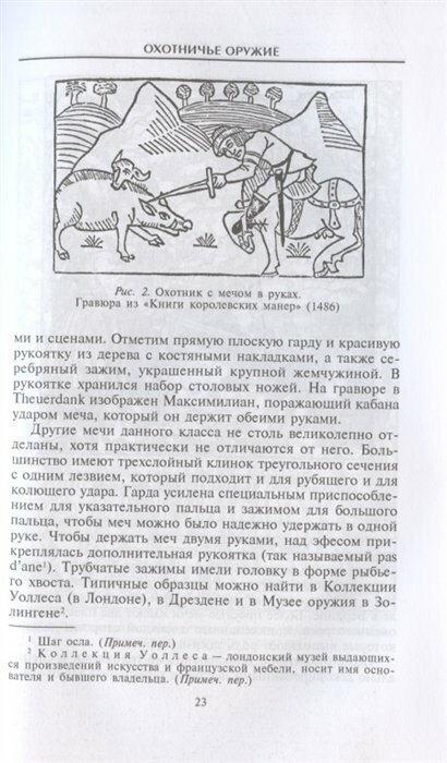 В книге представлен широкий перечень охотничьего оружия от копья римского охотника и средневековых стрел, использовавшихся во время охоты на дикого вепря, до применявшегося китобоями гарпунного ружья и винтовок Винчестера. Детально описаны все виды охотничьих сабель, ножей, штыков, луков, арбалетов, ружей и другого оружия от Средневековья до двадцатого столетия. Это исследование будет интересно всем, кто хочет больше узнать об орудиях охоты и о способах их применения.