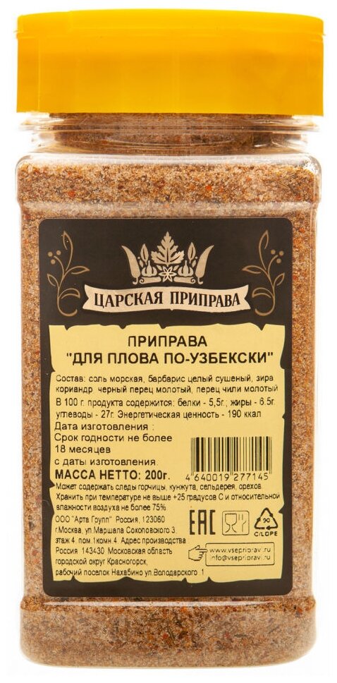 Приправа Царская приправа для плова по-узбекски 200г Арта Групп