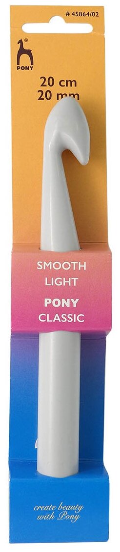 Крупный вязальный крючок Pony, выполненный из высококачественного прочного пластика, подходит как для работы с объемной пряжей, так и для плетения эффектных ажурных узоров из ниток. С его помощью вы можете связать уютный теплый плед, изготовить необычный сувенир в подарок или же дать новую жизнь любимым вещам из своего гардероба, освежив их декоративной отделкой и аксессуарами с уникальным авторским дизайном. Благодаря гладкой поверхности стержня и аккуратной головке классической формы, крючок очень удобен в работе, не нарушает структуру нити и помогает вывязать одинаковые ровные петли для правильного рисунка. Длина крючка: 20 см Диаметр крючка: 20 мм