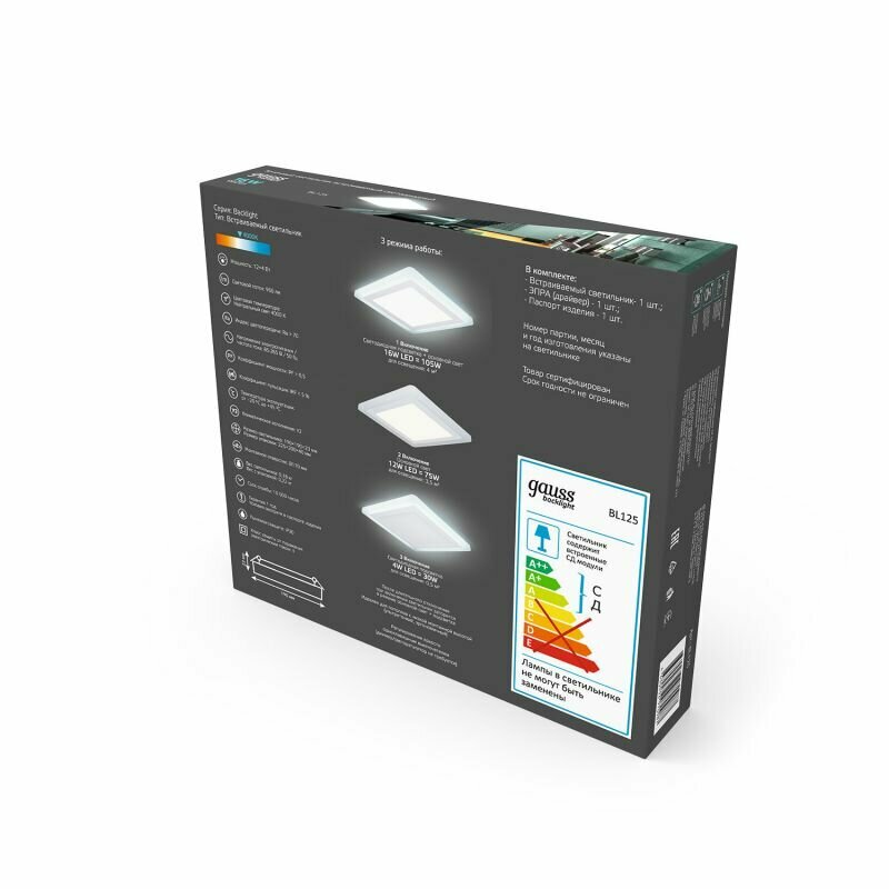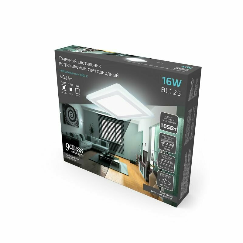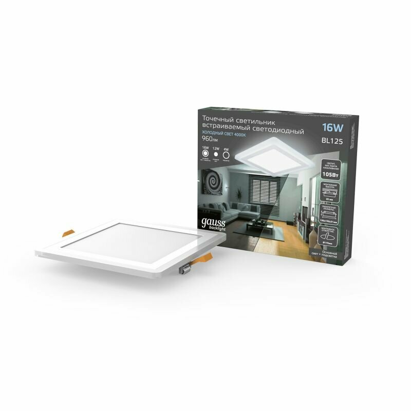 Светодиодная панель gauss Backlight BL125 LED 16 Вт 4000 холодный белый цвет арматуры: белый цвет плафона: белый