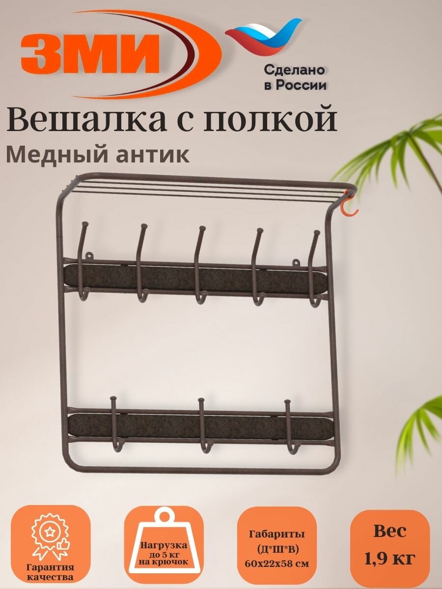 | Наименование модели (Модель) | Вешалка настенная металлическая для хранения одежды, размер 60х22х58 см |