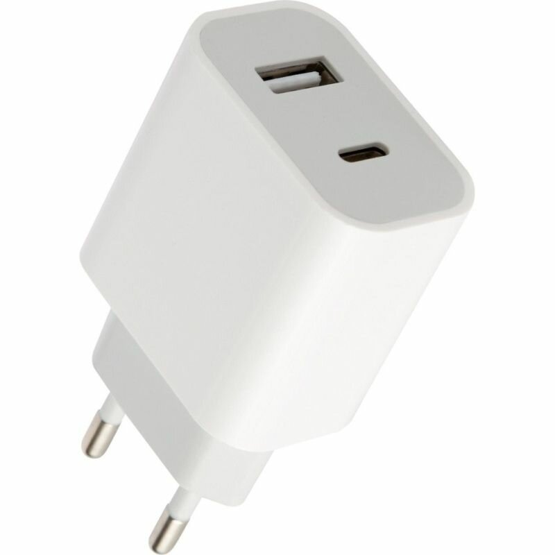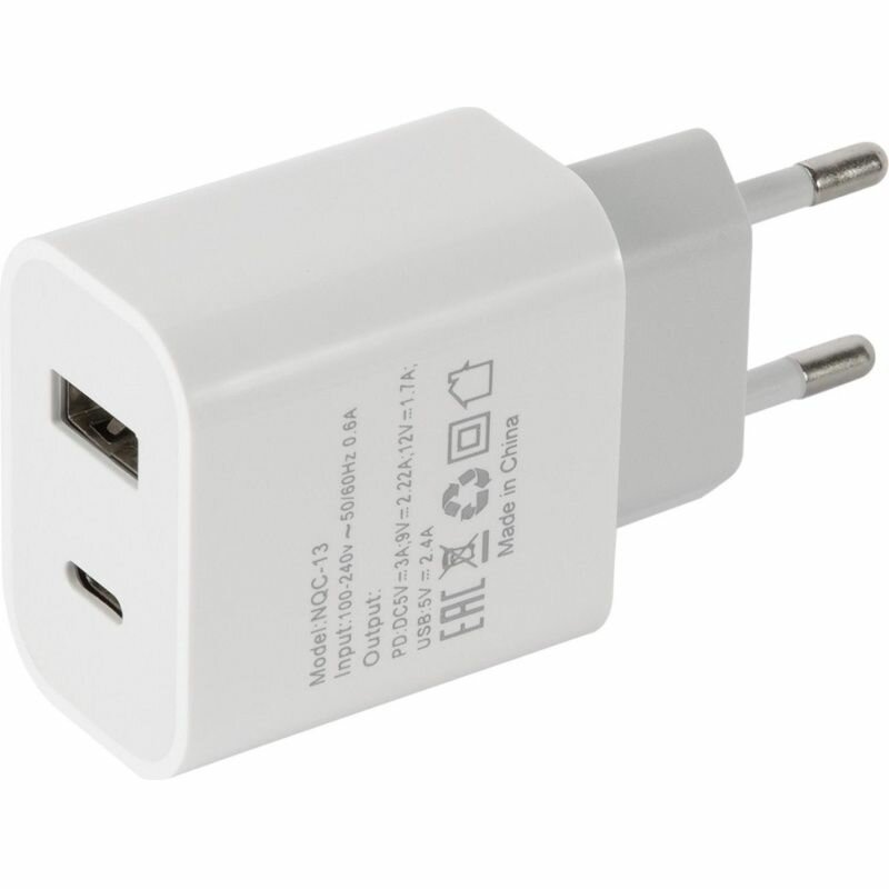 Сетевое зарядное устройство предназначено для зарядки мобильных устройств от электросети 220 В. Модель имеет 2 порта для зарядки - USB Type-A и USB Type-C. Максимальный ток заряда составляет 2.4 А. Порт Type-C поддерживает стандарт быстрой зарядки Power Delivery с максимальной мощностью заряда 20 Вт. Корпус зарядного устройства выполнен из качественного пластика.