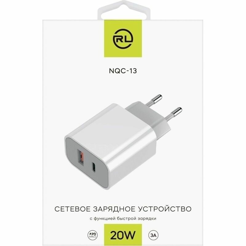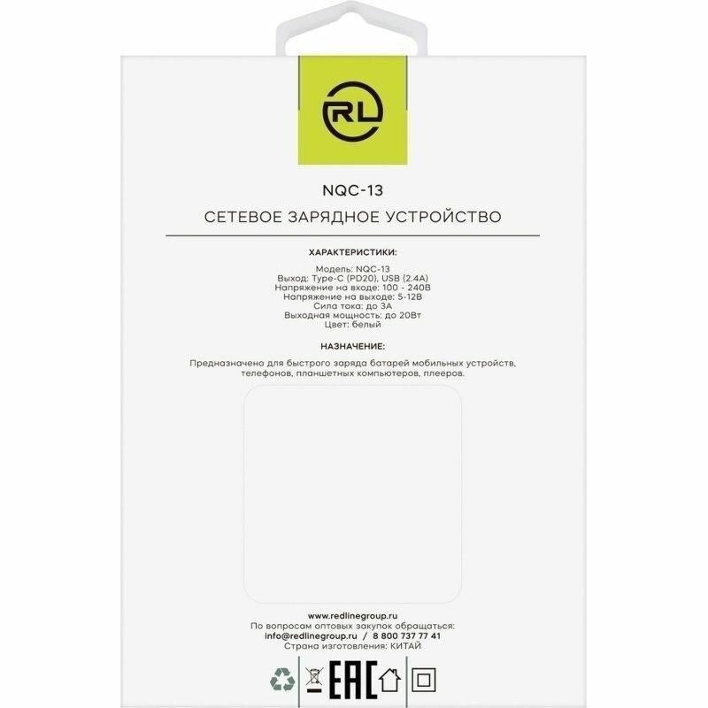 Зарядное устройство сетевое Red Line УТ000024925 Tech USB + Type-C 3A PD 20W белый NQC-13