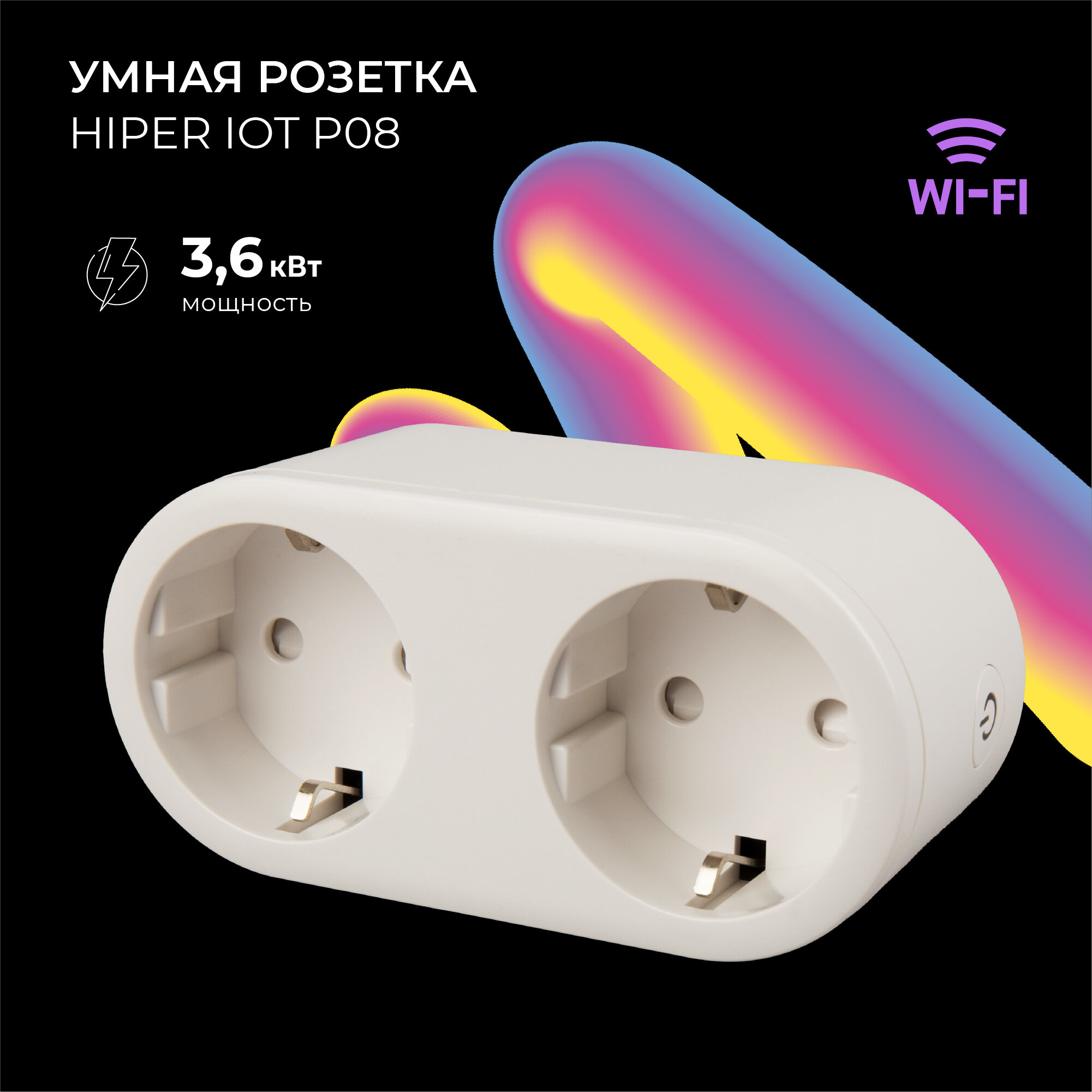 С умной двойной Wi-Fi розеткой HIPER 3600 Вт вам больше не придётся волноваться, вспоминая, выключили ли вы утюг, плойку или настольную лампу! Теперь достаточно просто заглянуть в приложение на вашем смартфоне или планшете чтобы контролировать состояние и управлять питанием электроприборов.