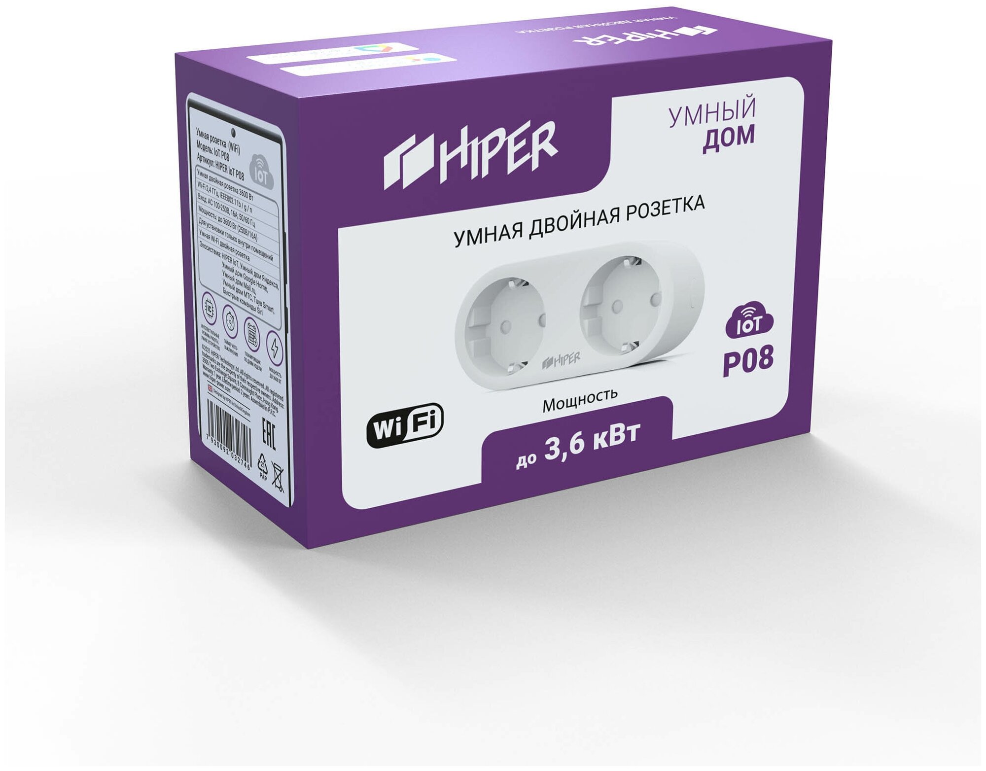 Умная розетка Hiper EU Wi-Fi белый IOT P08