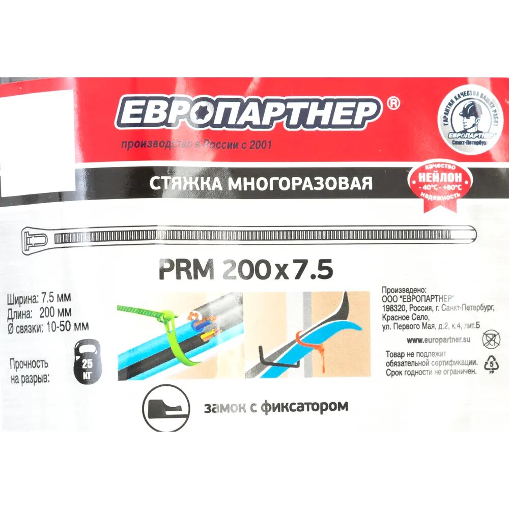 На сегодняшний день товар «Стяжка многоразовая нейлоновая PRM 75х200мм черная (50шт.) Европартнер» можно купить с кешбеком в 1 магазине: Яндекс.Маркет