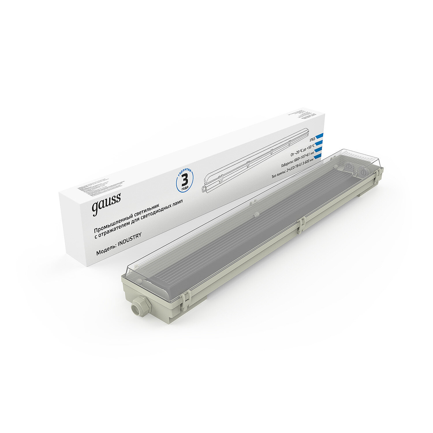 Светильник Gauss линейный СПП-Т8-G13 Industry для LED ламп 2х600 мм 660х107х61 мм