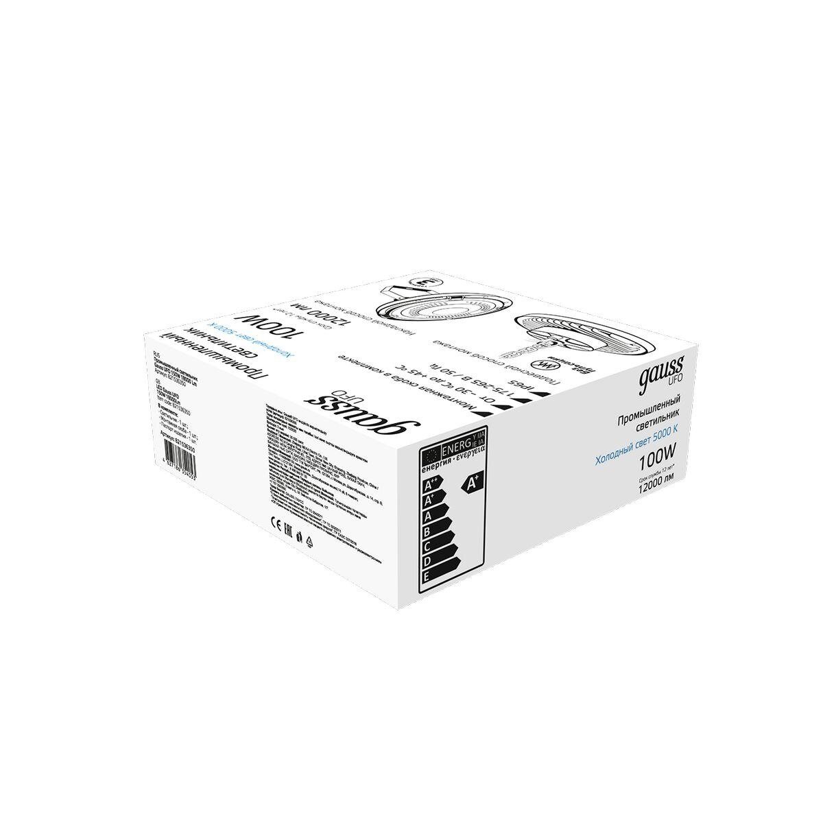 Светильник Gauss подвесной Ufo LED 100W 12000lm 5000K 230х88 мм