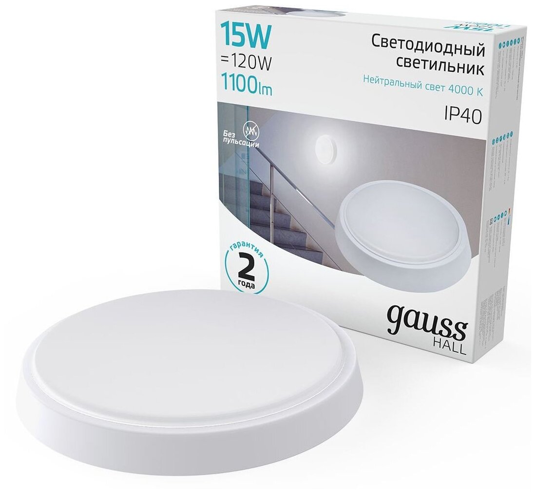 Светильник Gauss Hall круглый LED 15W 1100lm 4000K 155х33 мм