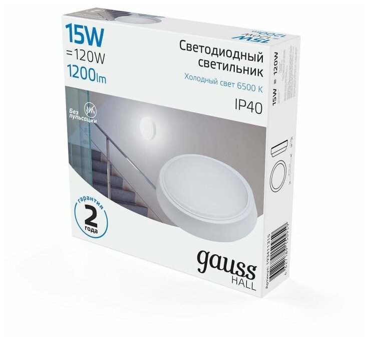 Светильник Gauss Hall круглый LED 15W 1200lm 6500K 155х33 мм