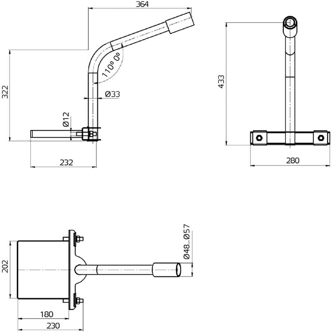 Модель: Кронштейн для уличных светильников D48 мм на опору с 1 хомутом 625х460х280 мм