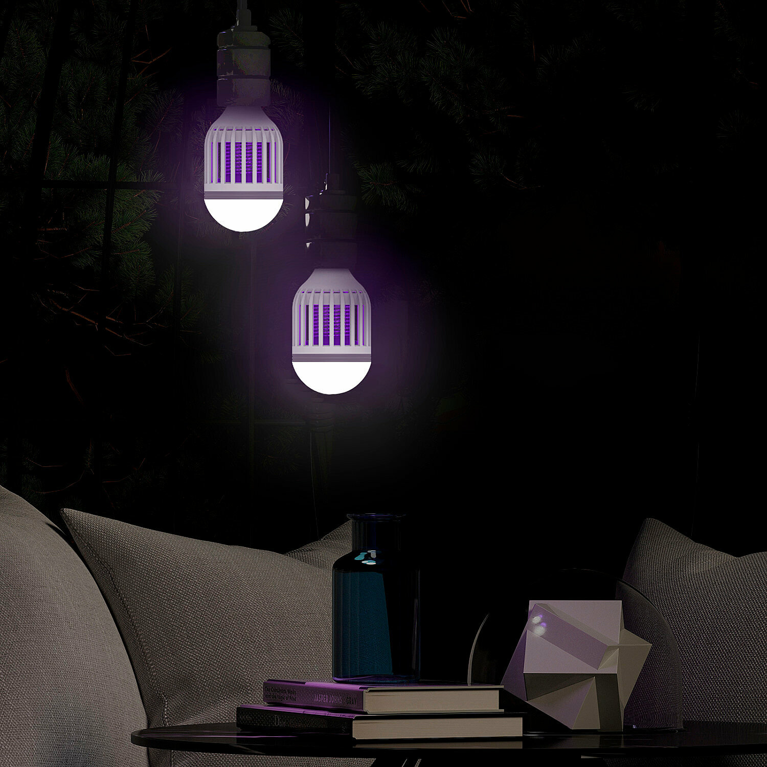 Светильники имеют 3 режима работы: режим защиты от насекомых с ультрафиолетовым излучением, общий режим свечения с цветовой температурой 3500К и комбинированный режим с подсветкой и защитой от насекомых. Ультрафиолет притягивает комаров, мотыльков и других летающих насекомых, а за счет напряжения исходящего от светильника при соприкосновении со стенкой они погибают. Кисточка, предоставляемая в комплекте, позволяет быстро и легко очистить светильник от насекомых.