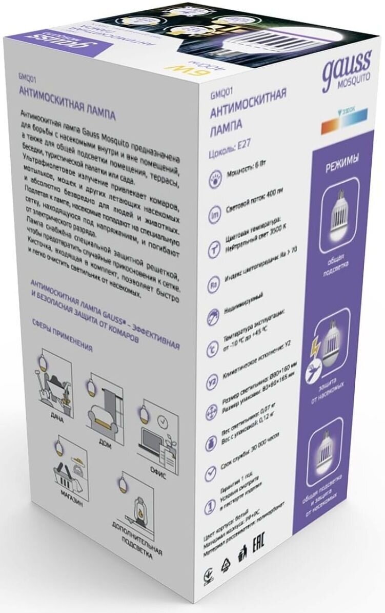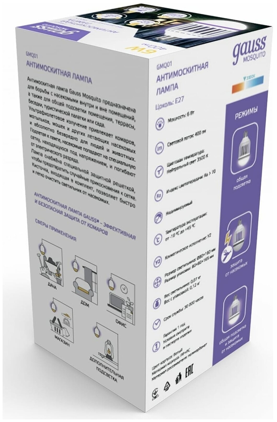 Светильник Gauss Антимоскитная лампа Mosquito, 6Вт, E27,