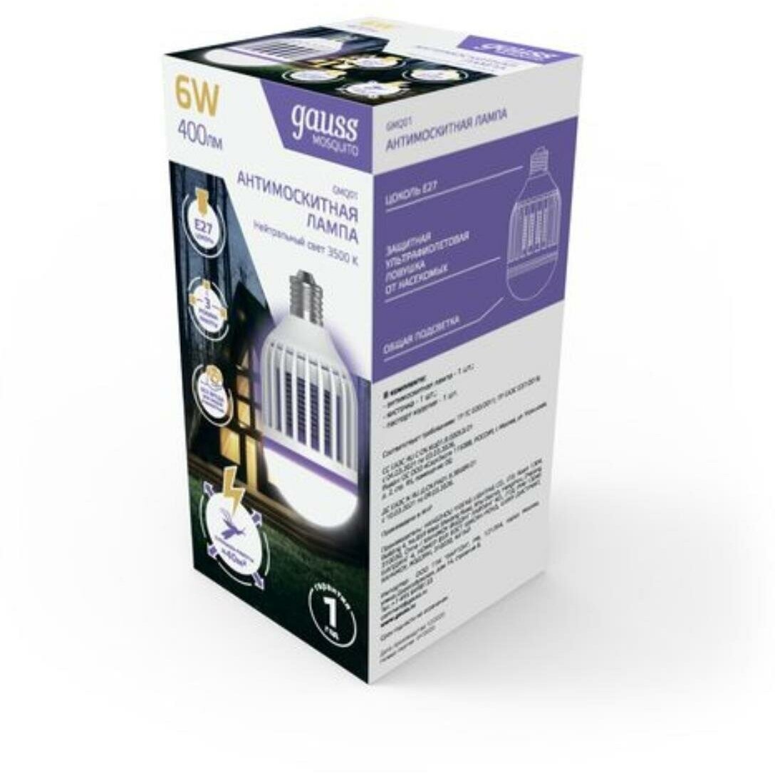 На сегодняшний день товар «Светильник Gauss Антимоскитная лампа Mosquito, 6Вт, E27,» можно купить с кешбеком в 1 магазине: Яндекс.Маркет