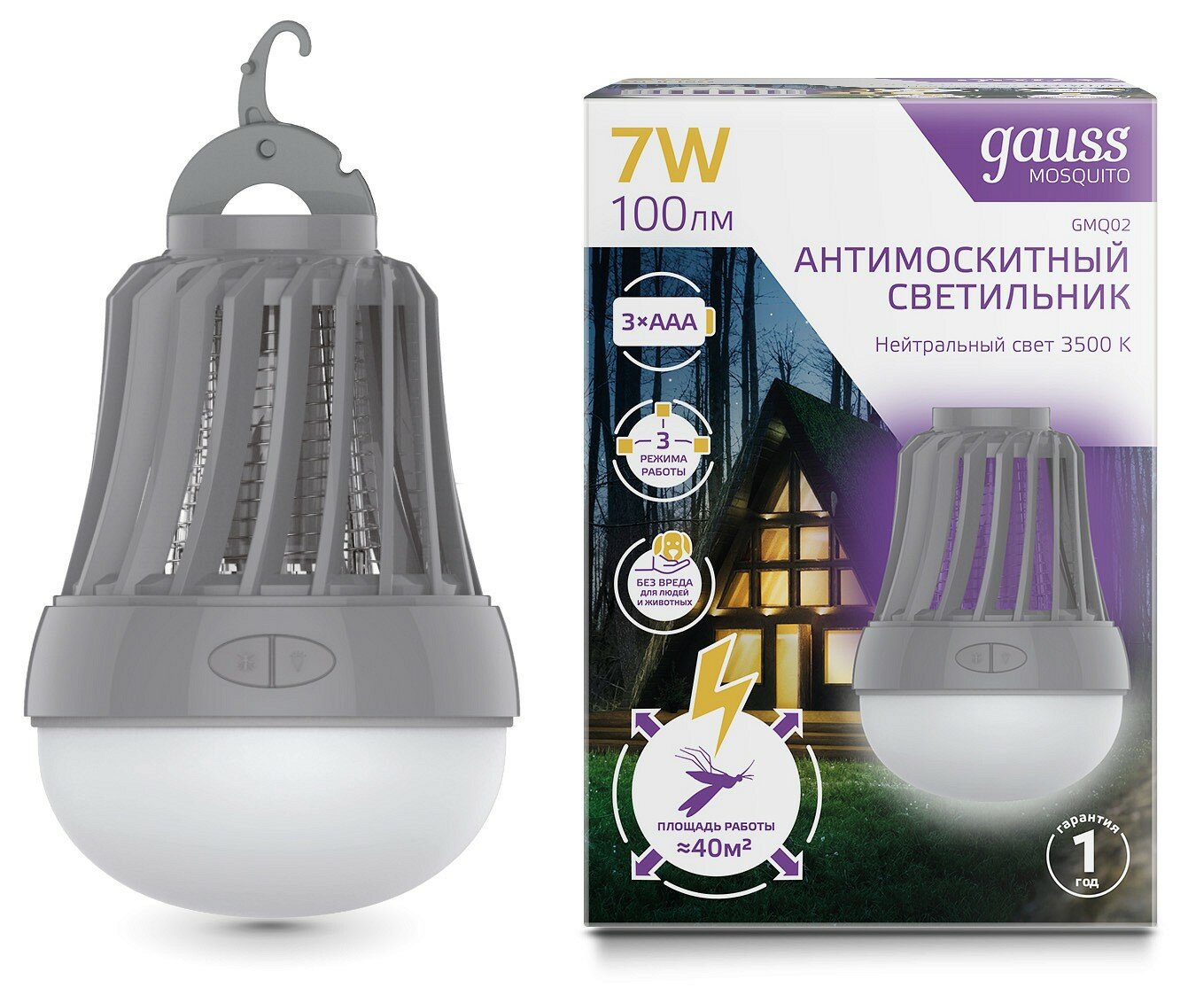 Светильник Gauss Антимоскитный светильник Mosquito с подвесом, 7Вт, 3AAА,