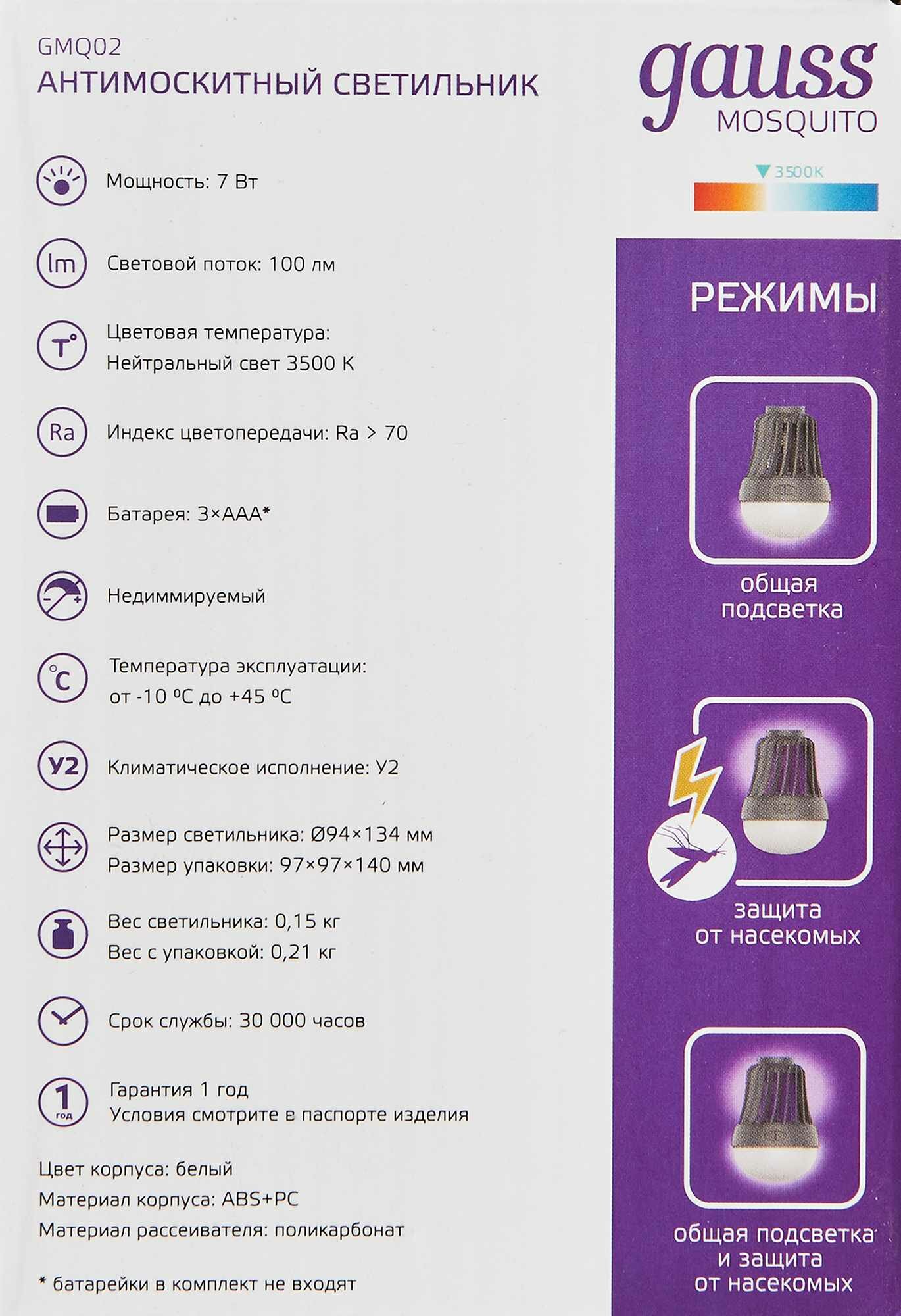 На сегодняшний день товар «Светильник Gauss Антимоскитный светильник Mosquito с подвесом, 7Вт, 3AAА,» можно купить с кешбеком в 2 магазинах: xcom-shop, Яндекс.Маркет