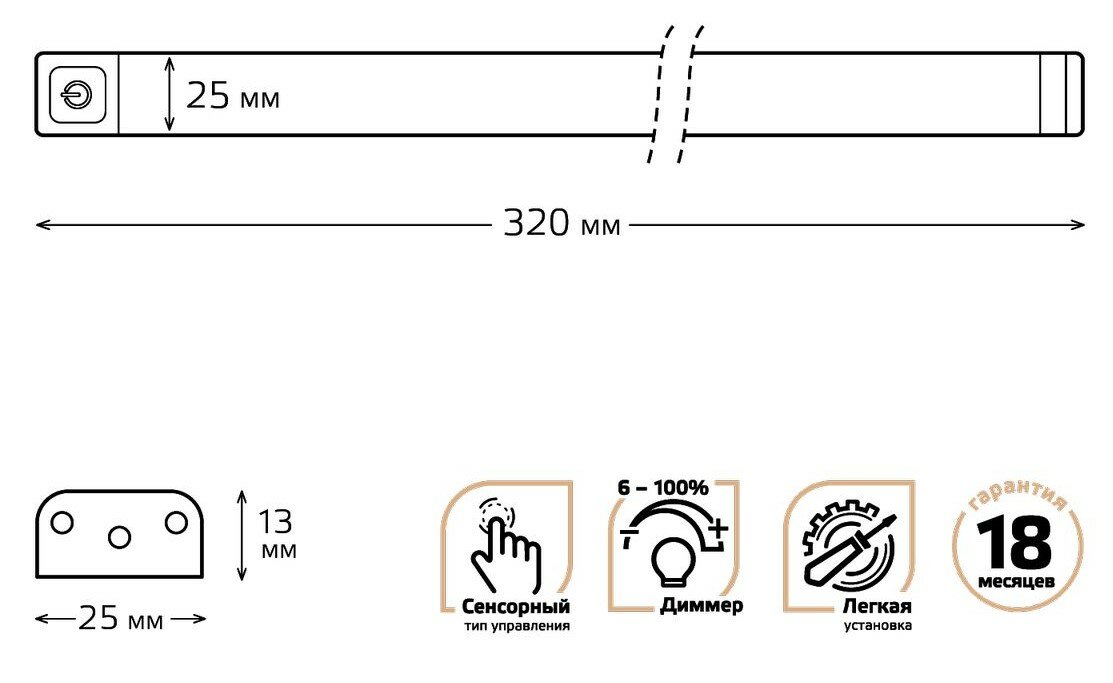 - Сенсорный линейный светильник для кухни, стола, гардероба, кладовой | GAUSS