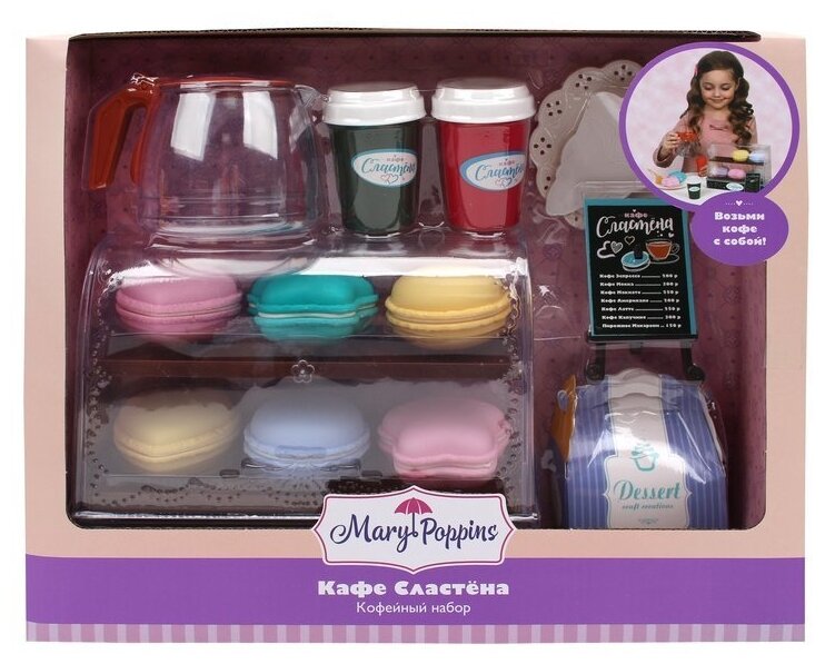 С этим чудесным набором маленькая леди почувствует себя хозяйкой настоящей маленькой кофейни! А её гости прекрасно проведут время, насладившись ароматным капучино, или возьмут стаканчик эспрессо и вкусный десерт с собой.