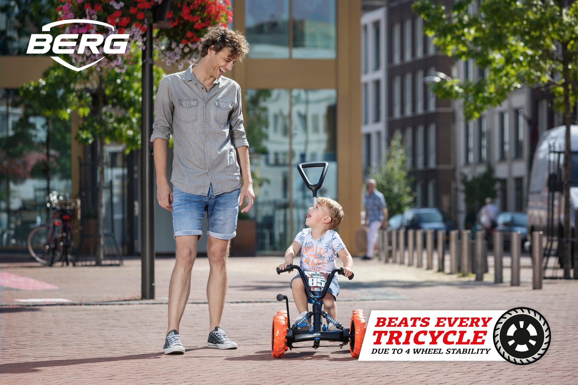 Особенности Веломобиль BERG Buzzy Nitro 2-in-1: нет свободного хода педалей, руль (велосипедный), регулируемое сиденье, внедорожный протектор шин, дополнительная ручка для родителя, ручной тормоз, возможность регулировки привода, блокировка руля, max вес пользователя 30кг.