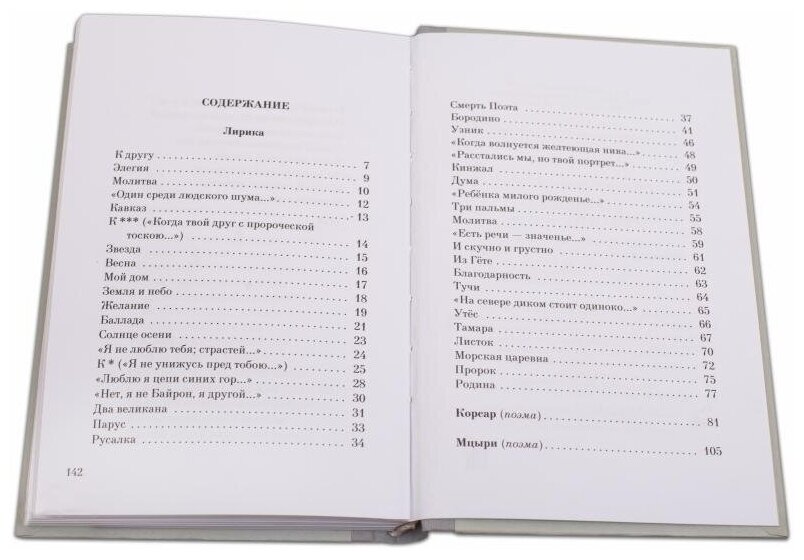 В небольшой по объему сборник вошли не только всем известные стихи М.Ю.Лермонтова, но и поэмы «Корсар» и «Мцыри». Для тех, у кого дети учатся в школе, эта книга подойдет. В ней собраны все стихи, которые изучаются по программе и мое любимое стихотворение - «Морская царевна». Издание добротное, качественное, приятно держать в руках. С большим удовольствием перечитали стихи классика и все взрослые в нашей семье.