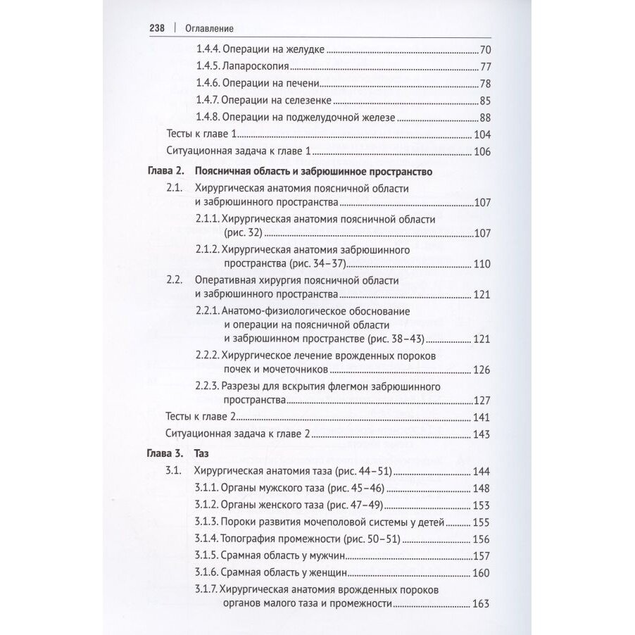 Во втором томе представлены хирургическая анатомия живота, поясничной области и забрюшинного пространства, таза и позвоночника, а также оперативные вмешательства в этих областях. Полноцветные картинки и графы логических структур по хирургической анатомии дополнены схематическими рисунками по оперативной хирургии. В учебник включены индивидуальные и возрастные отличия, хирургическая анатомия пороков развития, анатомо-физиологическое обоснование и оперативные вмешательства, а также операции при аномалиях развития. По оперативной хирургии представлены хирургические доступы, лапароскопии, ревизии органов при травмах и патологии, разрезы для вскрытия и дренирования флегмон.