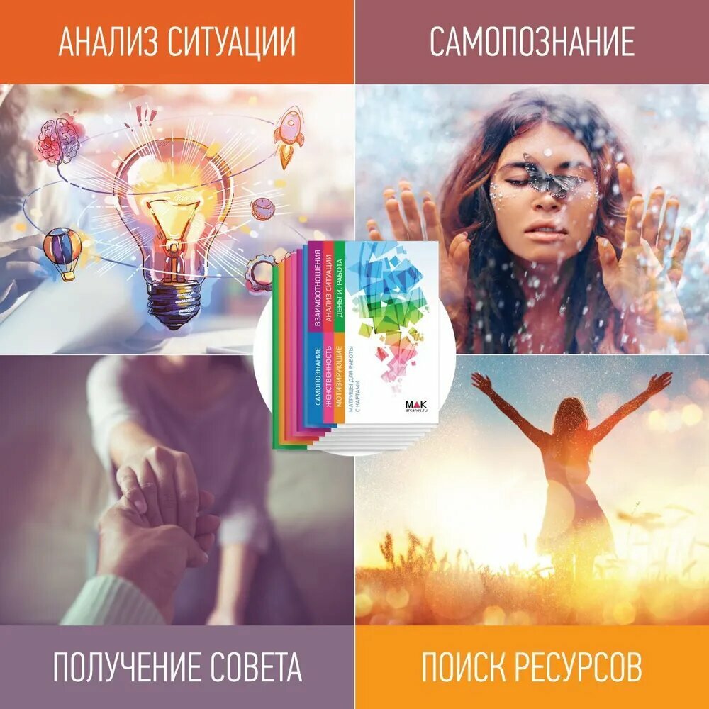 Большая коллекция техник и раскладов для самопознания, исследования вопросов взаимоотношений, материальных вопросов, обретения женственности, правильной мотивации и ресурсов. Покупая все брошюры с матрицами в наборе, вы экономите 10%.