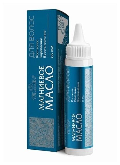 При нехватке магния волосы становятся сухими и ломкими, теряют эластичность, выглядят безжизненно.Высококонцентрированный раствор солей магния в воде оказывает стимулирующее действие и активизирует рост волос. «Магниевое масло» улучшает местную микроциркуляцию, способствует укреплению ослабленных фолликулов и оказывает ухаживающее действие за кожей головы.Меры предосторожности: избегать попадания в глаза. При попадании тщательно промыть большим количеством теплой воды. Не наносить на поврежденные участки кожи.Перед применением нанести небольшое количество на локтевой сгиб или запястье. Если через 15-40 минут на коже не появятся признаки раздражения (сильное жжение, сильное покраснение), средство можно использовать.Возможна индивидуальная непереносимость компонентов. Не применять при беременности, в период лактации.Способ примененияНанести на чистую кожу головы и на полотно волос по всей длине массирующими движениями. Наденьте полиэтиленовую шапочку и оберните голову полотенцем. Смойте шампунем через 20-30 минут. Повторяйте процедуру 1-2 раза в неделю на протяжении 2-3 месяцев.