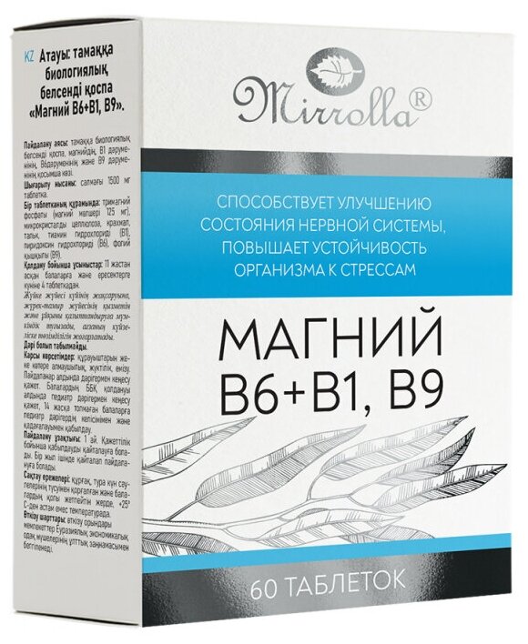 Магний B6+B1 B9 таблетки Mirrolla/Мирролла 15г 60шт ООО Мирролла (570836)