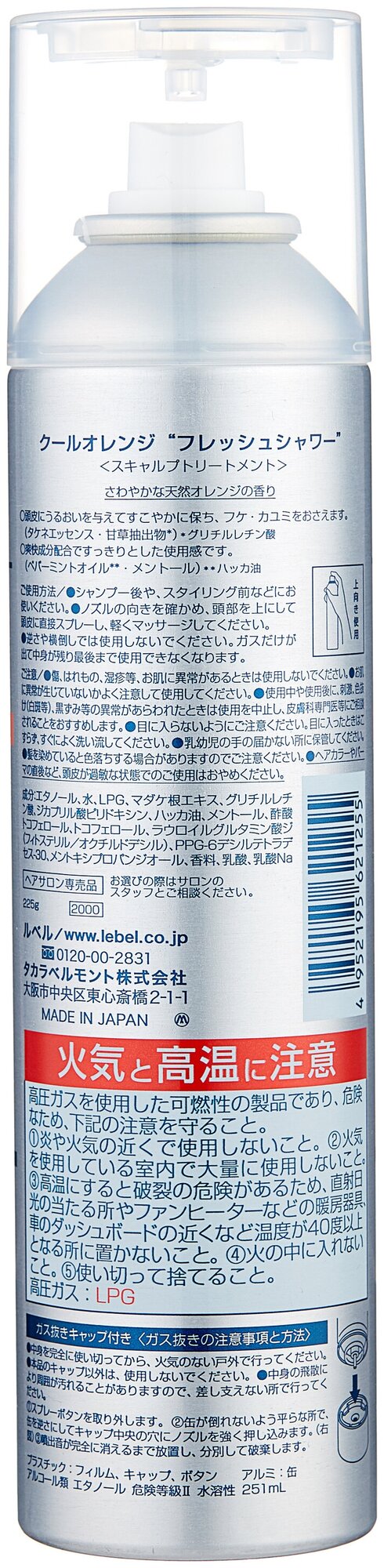 Освежитель для волос и кожи головы Cool Orange LebeL/Лебель 225мл Такара Бельмонт Корпорейшн (1638600)