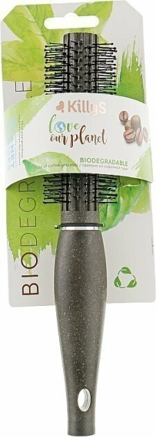 Популярный бренд KillyS заботится не только о своих любимых покупателях, но и об экологии. Специально для нашей планеты, была изобретена эко-щетка состоящая на 70% из молотого кофе.Эргономическая ручка и удобный диаметр (40 мм со шпильками) подойдет для волос средней и короткой длины.