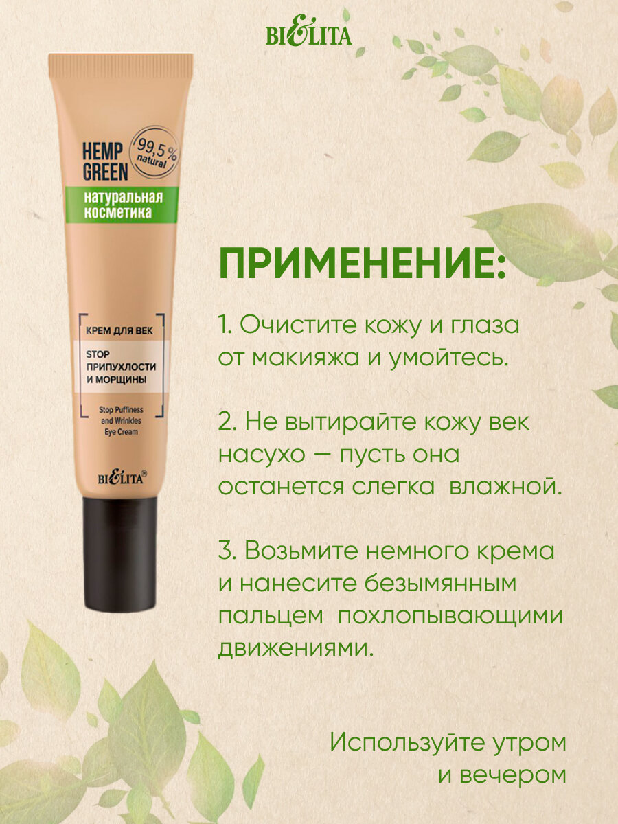Крем для век Stop припухлости и морщины Hemp green Белита 20мл Белита СП ООО (578415)