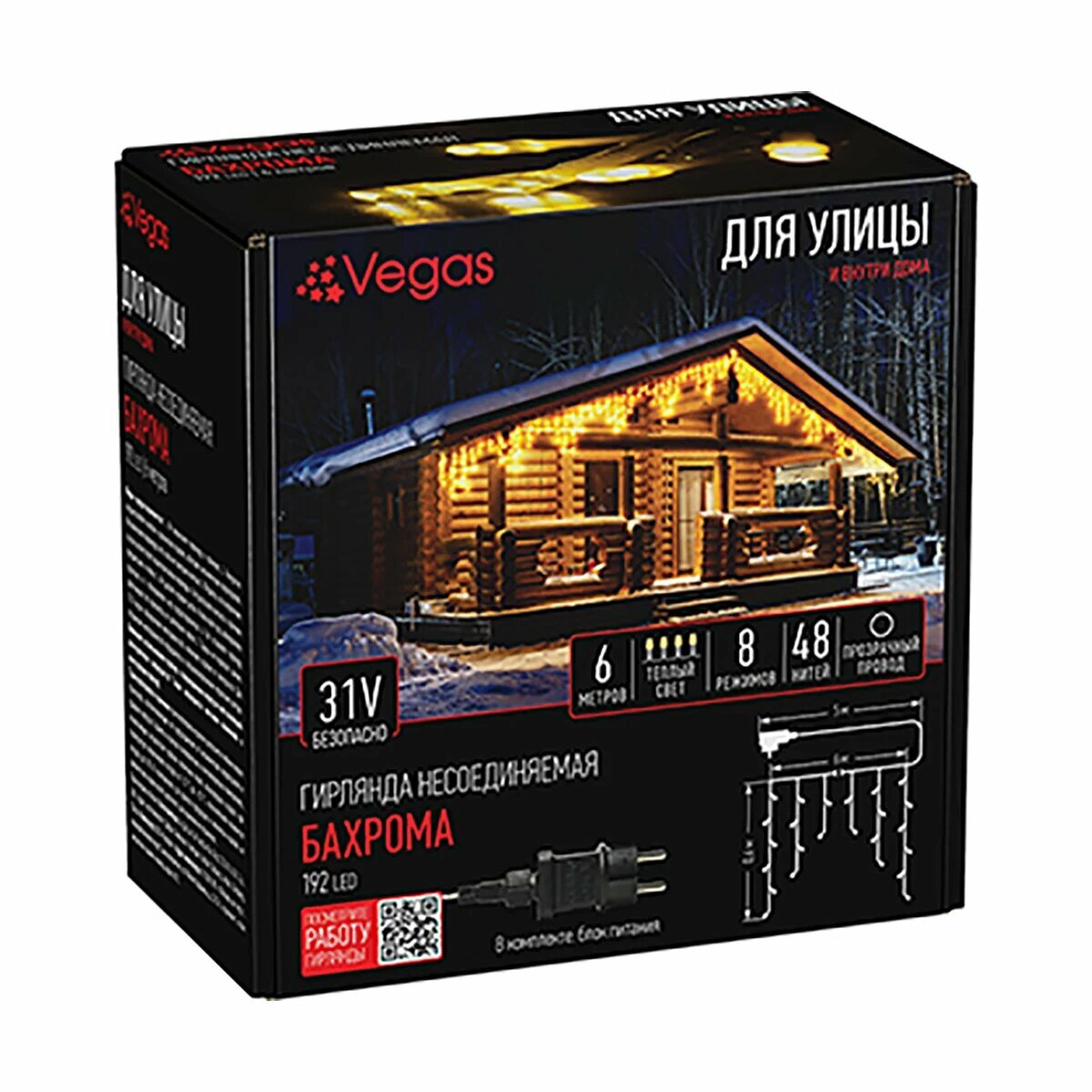 На сегодняшний день товар «Электрогирлянда Vegas Бахрома теплый 48 нитей с блоком питания 31V 0.6*6м КИТАЙ» можно купить с кешбеком в 1 магазине: Яндекс.Маркет