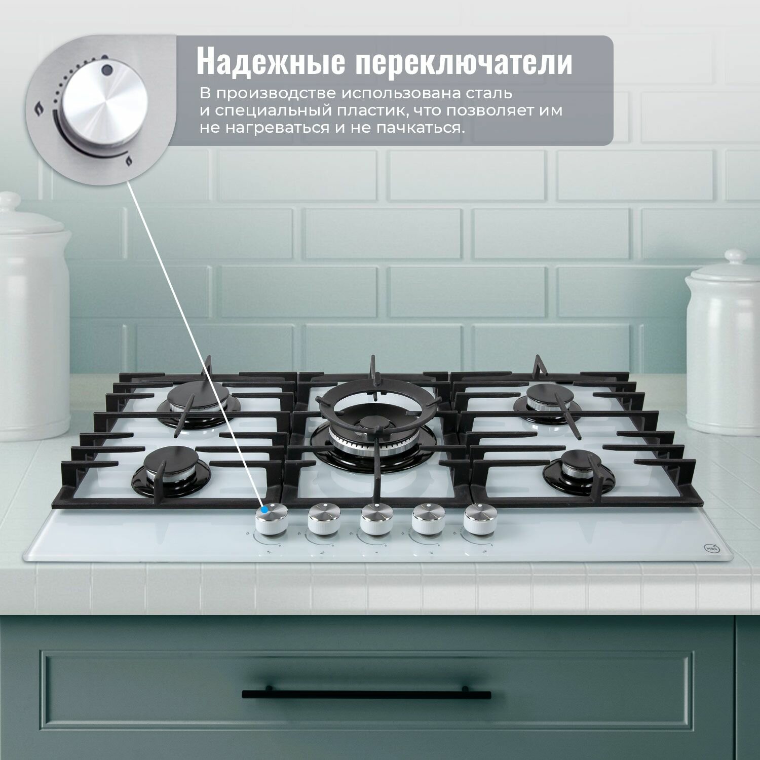 Приобретение встраиваемой газовой варочной поверхности будет отличным решением для семьи, где любят много и вкусно готовить. Пять ее разных конфорок позволят вам комфортно и безопасно разместить несколько больших кастрюль или сковород, а ВОК-горелка приготовит любое блюдо за считанные минуты. Стильный дизайн этой поверхности с белым жаропрочным стеклом, чугунными решетками станет украшением любой современной кухни, а работает она как на магистральном, так и на баллонном газе. Газовая варочная поверхность оснащается электроподжигом, держателем для сковороды ВОК и комплектом дополнительных жиклеров (форсунок) для подключения к баллонному газу. При желании вы также можете докупить к этой поверхности подставку для турки и специальный противень для приготовления гриля. За безопасность использования этой поверхности отвечает система газ-контроль. Вся кухонная техника бренда MBS соответствует всем современным европейским стандартам, а гарантия производителя составляет 3 года.