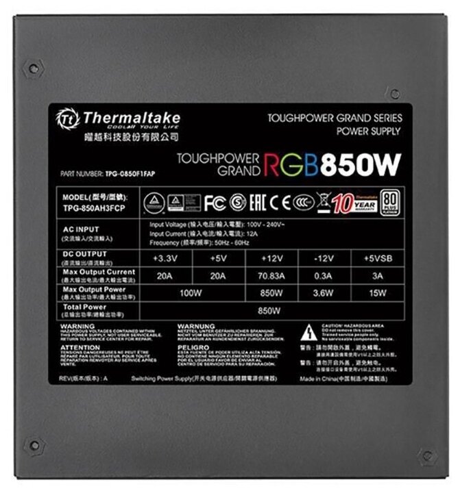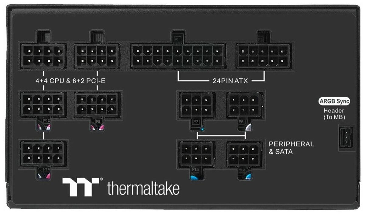 Thermaltake TOUGHPOWER PF1 ARGB 850W — модульный блок питания с сертификатом 80 PLUS Platinum и вентилятором с подсветкой из 18 RGB адресных светодиодов. Серия блоков питания Toughpower PF1 ARGB Platinum создана с использованием высококачественных компонентов и продвинутых технологических решений.