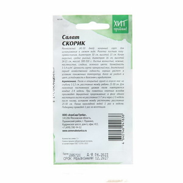 Семена салат скорик АСТ 1 гр Без бренда