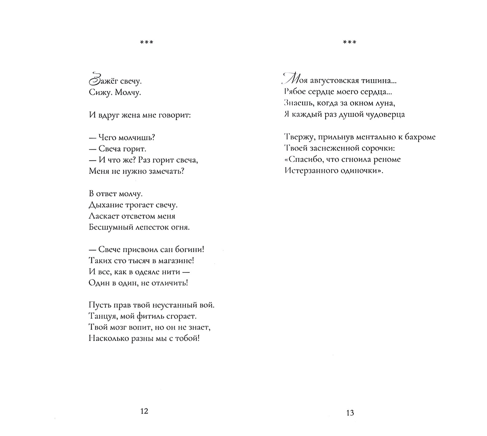 Поэтические строки проникнуты цельностью романтического восприятия и душевной чистотой, не закостеневшей в жизненных бурях, открытой всему доброму, с верой в счастье и настоящую любовь в нашем странном и жестоком мире.