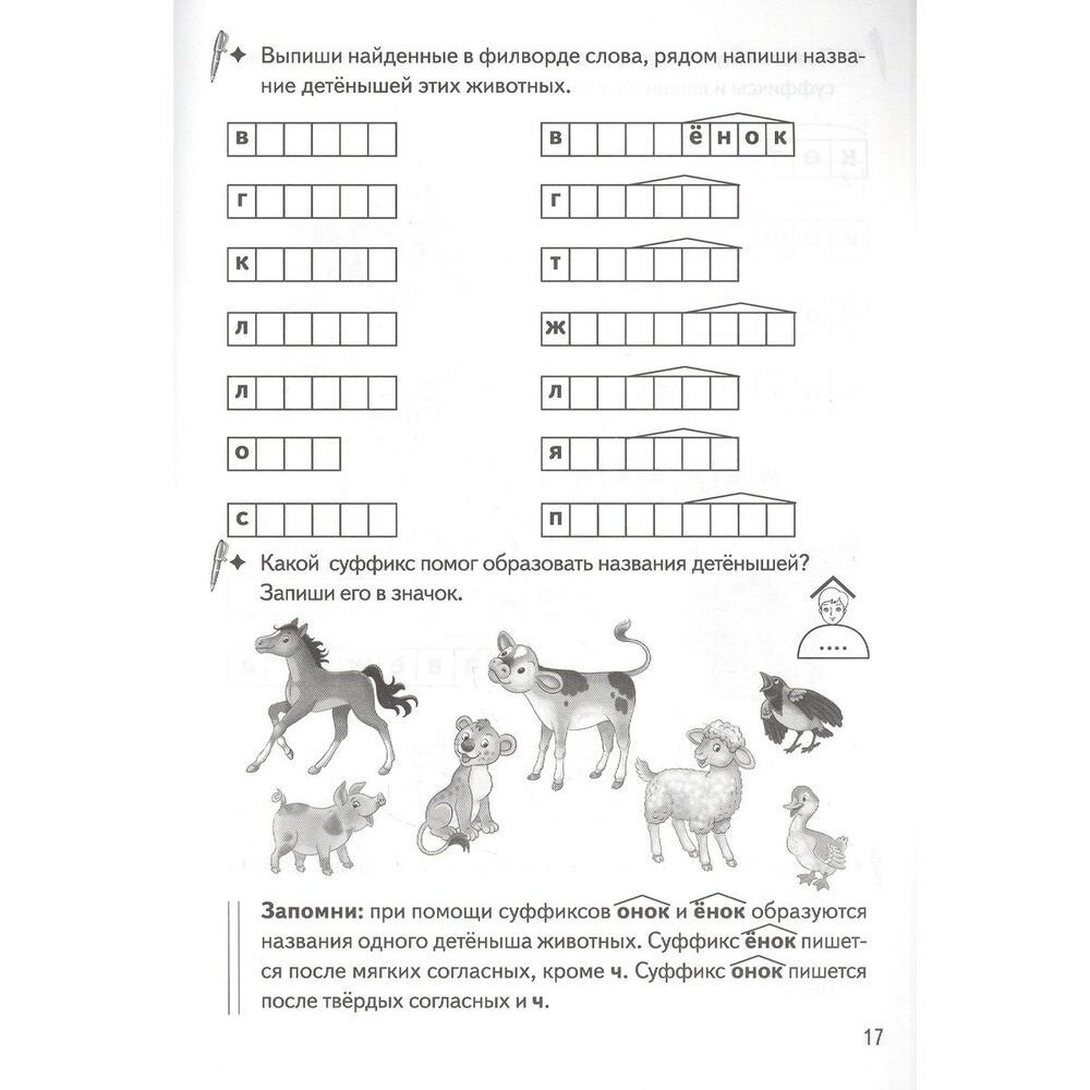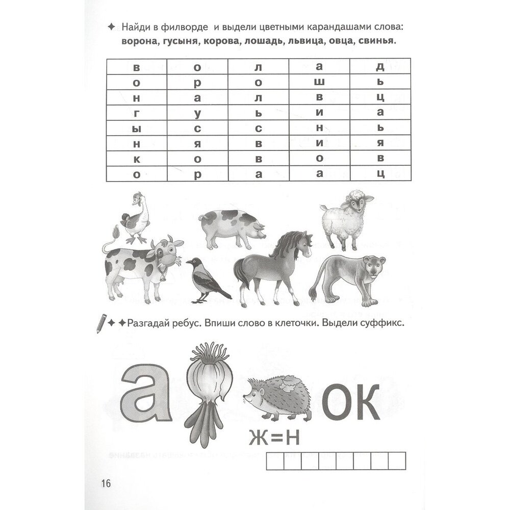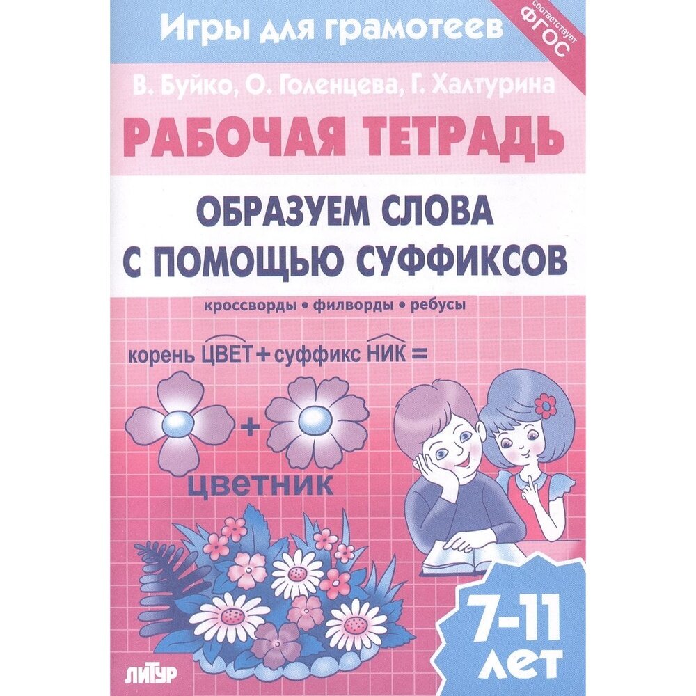Рабочая тетрадь Образуем слова с помощью суффиксов кроссворды филворды ребусы 7-11 лет (Буйко Валентина Ивановна, Голенцева Ольга Витальевна, Халтурина Галина Павловна); Литур, 2021