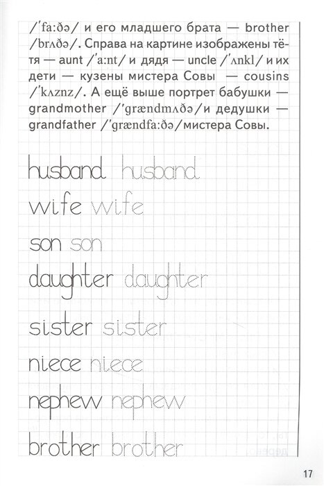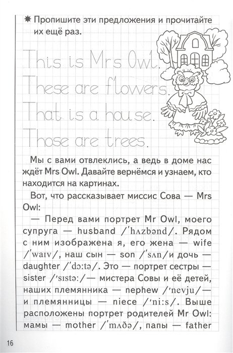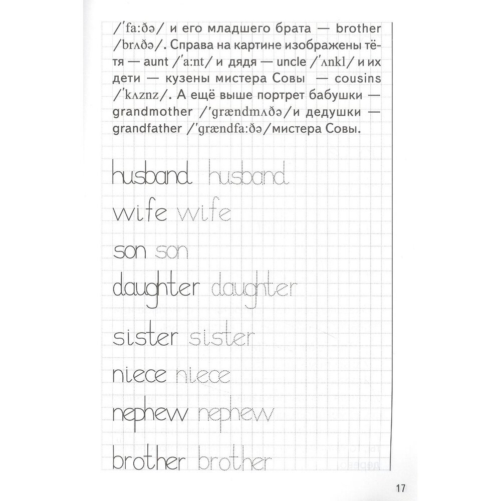 В основу данных прописей, которые с полным основанием называются занимательными, легла оригинальная история знакомства двух симпатичных героев. Открывая для себя новые подробности их жизни, дети в игровой форме, через систему познавательных и творческих заданий, учатся правильно писать английские буквы и слова, получают некоторые сведения о стране изучаемого языка и образе жизни его носителей, познакомят с Лондоном и образом жизни горожан, подскажут как правильно выбрать форму обращения к другому человеку, научат подписывать адрес на конверте, познакомят с английским домом и садом, названиями садовых растений. Все задания в тетради надо выполнять хорошо отточенными карандашами или цветными ручками/фломастерами с тонким стержнем, следуя точному написанию букв. Тетрадь рассчитана на совместную работу взрослого и ребенка.