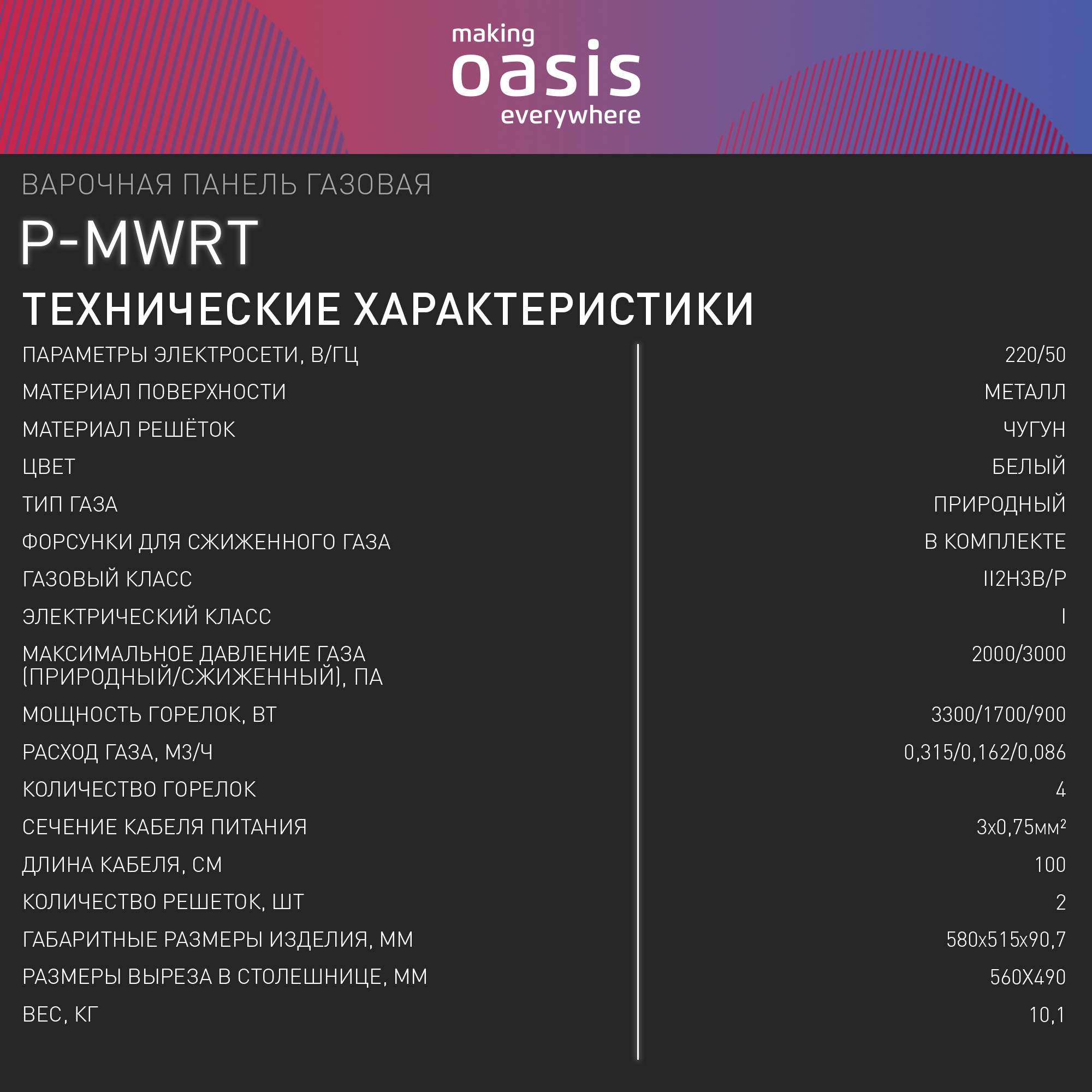 Встраиваемая газовая панель Oasis everywhere P-MWRT (B)
