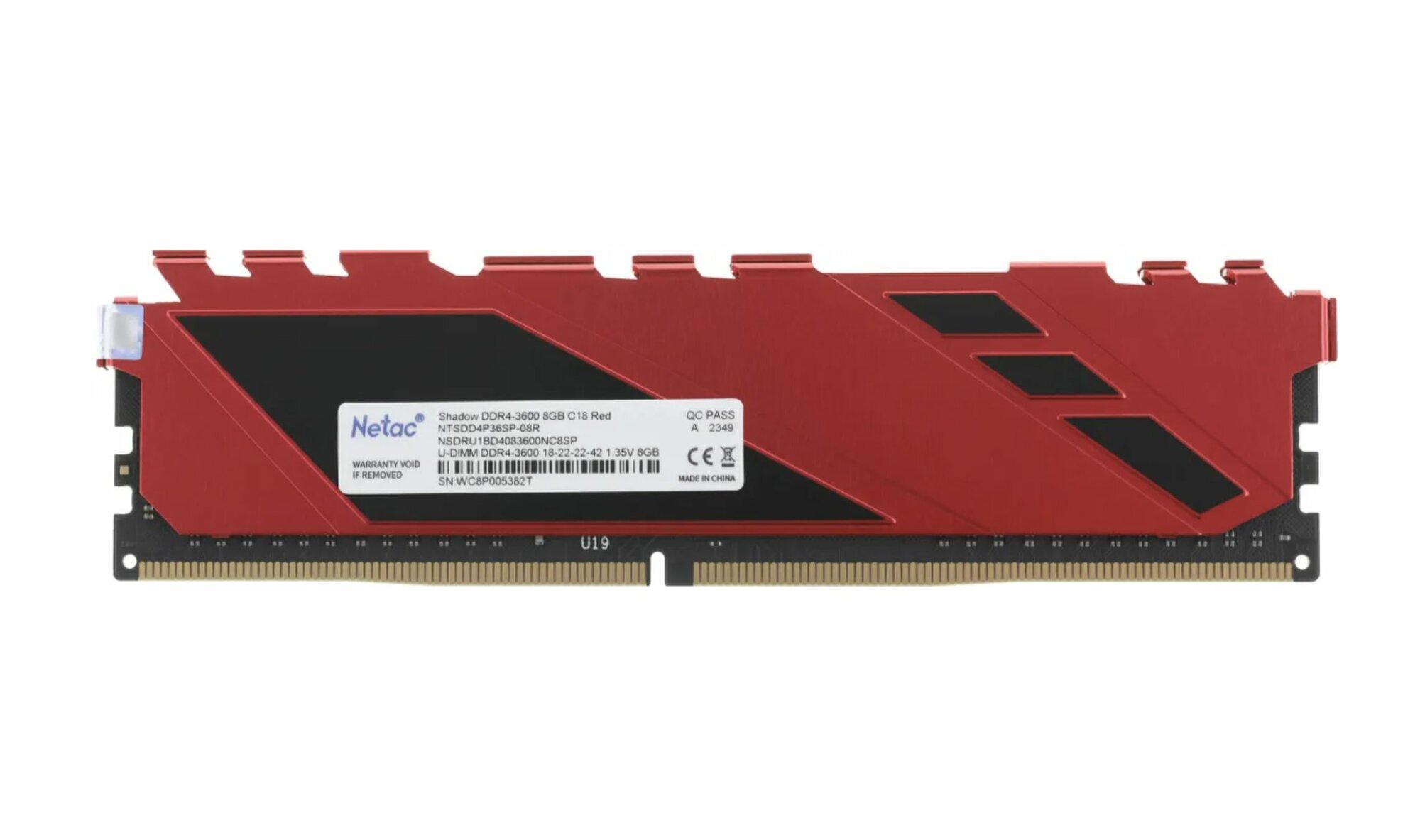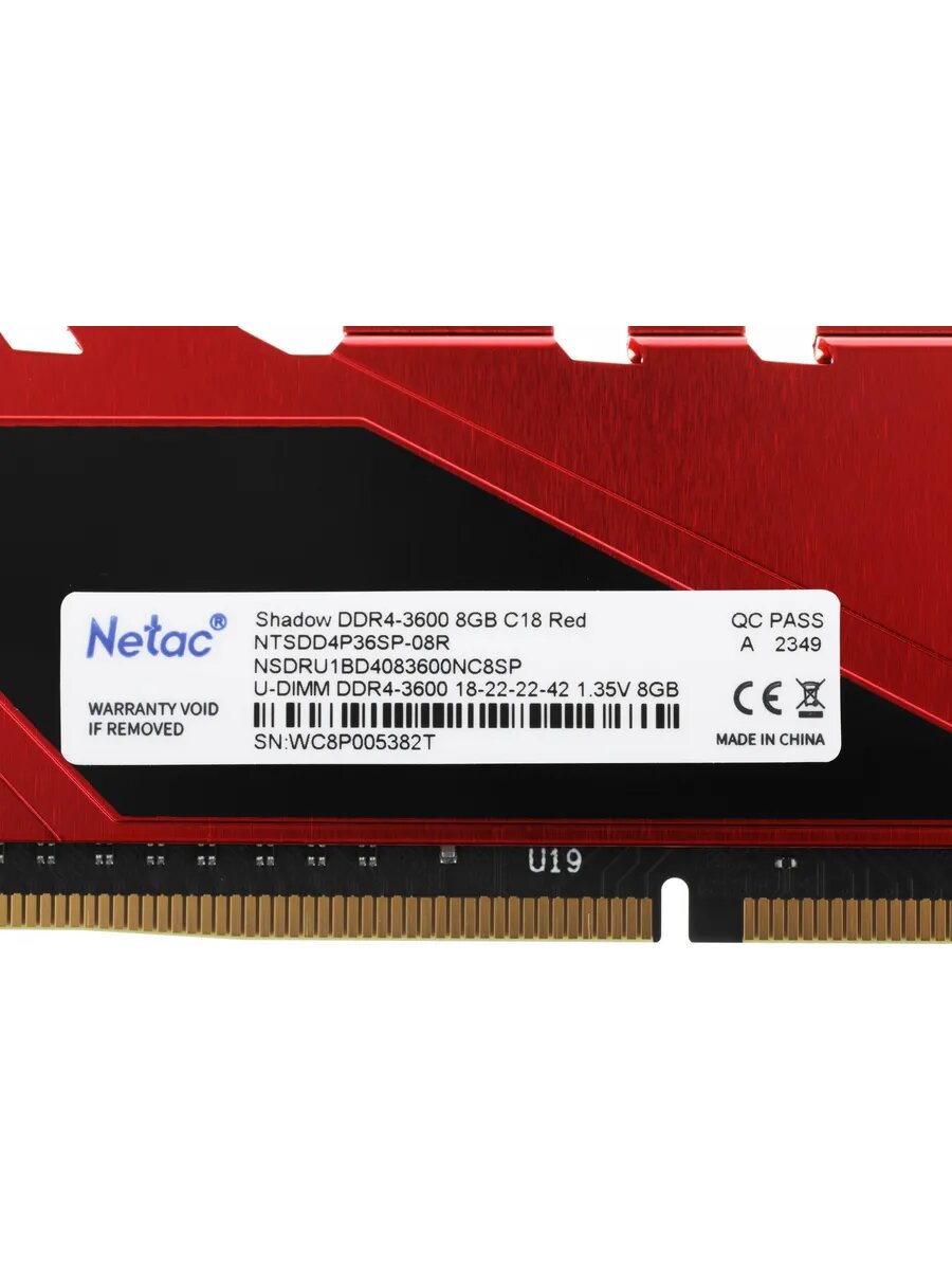 Модуль памяти DDR4 8GB Netac Shadow PC4-28800 3600MHz CL18 радиатор red 1.35V NTSDD4P36SP-08R